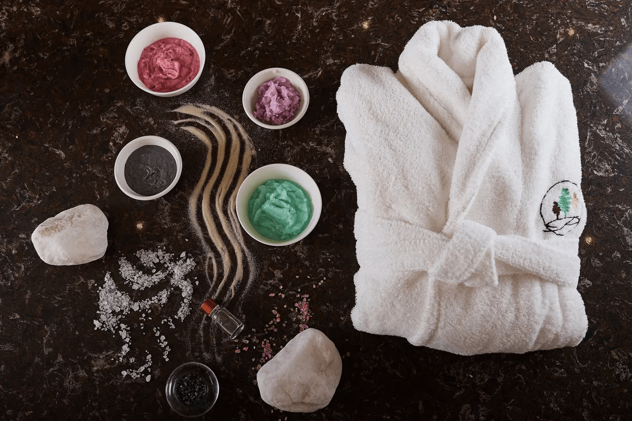 В душевых есть универсальный гель-шампунь, но можно воспользоваться своими любимыми средствами или приобрести их на ресепшн СПА. С собой также необходимо взять резинку для волос, чтобы собрать длинные волосы. Халат и банную простыню, при желании, можно арендовать дополнительно.